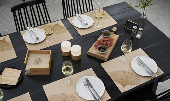 Chez Duni, vous trouverez toutes les solutions d'impression et de gaufrage dont vous avez besoin, ainsi qu'un choix inégalé de matières écoresponsables, de décors et de couleurs. Notre capacité à combiner un support local et un réseau mondial nous permet d'offrir des solutions assorties, par exemple : serviettes avec impression de la marque, nappes, sets de table, dessous de verre ou bougies pot en verre.